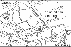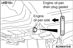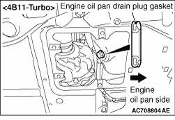 in the illustration, and then tighten the engine oil pan drain plug to the specified torque. <4B10, 4B11-Turbo> Tightening torque: 39 ± 5 N·m