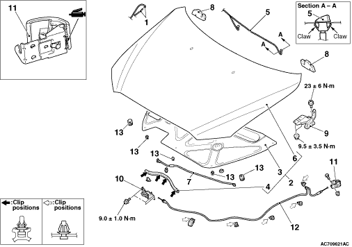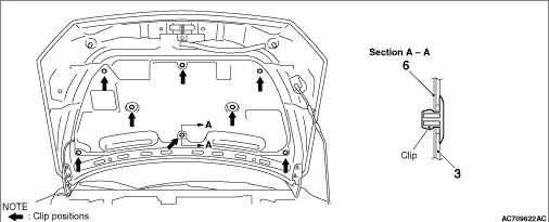 • Adjustment of clearance around hood <Except RALLIART> (Refer to .)