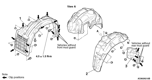 Front mud guard <Vehicles with front mud guard> (Refer to GROUP 51 - Mud guard .)