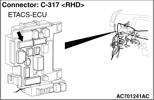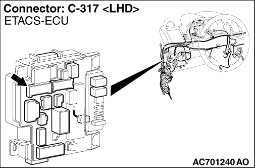 STEP 1. Connector check: C-23 KOS-ECU connector, C-317 ETACS-ECU connector |