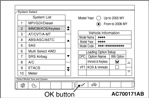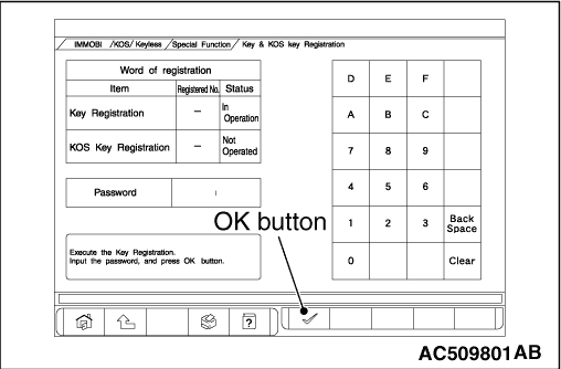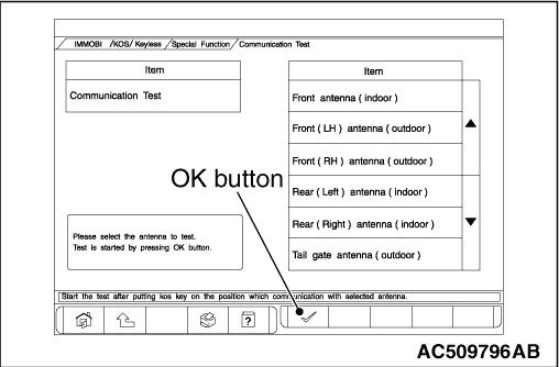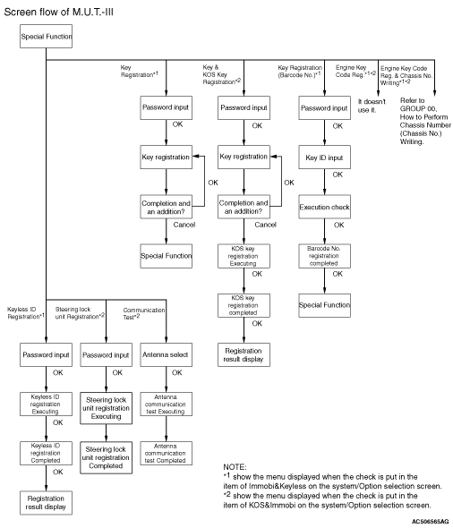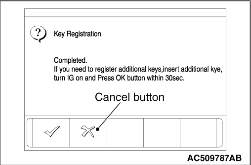 • When the key cannot be registered using M.U.T.-III MB991958, refer to Inspection Procedure 2 "The keyless operation key cannot be registered using M.U.T.-III .