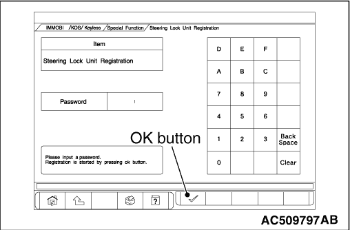 • If KOS-ECU is replaced, register the steering lock unit (only when the steering lock assembly is not replaced) and the chassis number before the key registration.