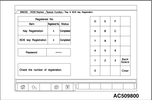 • "Key & KOS Key Registration": When the keyless operation key is replaced or added as a unit and KOS-ECU is replaced