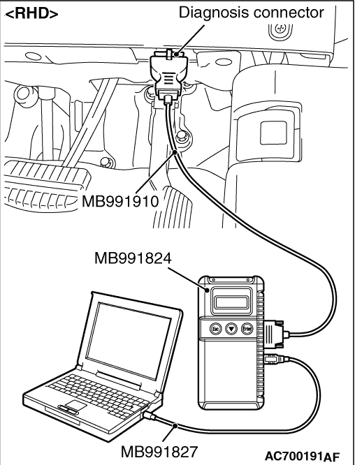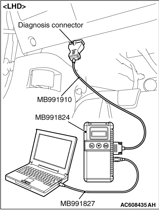 caution Before connecting or disconnecting the M.U.T.-III, turn the ignition switch to the "LOCK" (OFF) position.