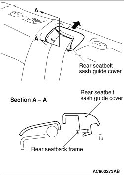 Remove the rear seat belt sash guide cover by pulling it toward the rear side of the rear seatback. |