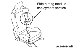 • Never measure the side-airbag module (squib) circuit resistance even with the specified tester. Measuring the circuit resistance with a tester causes accidental air bag deployment due to current that flows or static, resulting in serious personal injury.