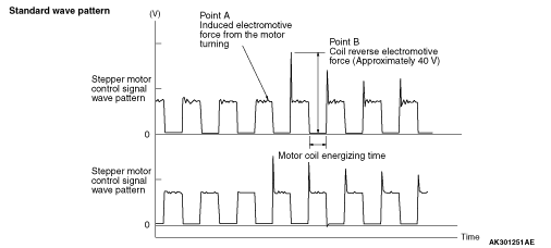 • Verify that the standard wave patter appears when the stepper motor operating conditions are met.