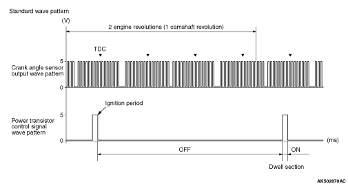 3.To verify the ignition advance angle, observe it simultaneously with the crank angle sensor output signals.