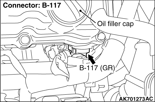 - Use the test harness (MB991709) to connect B-117 intake camshaft position sensor