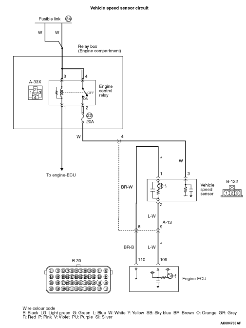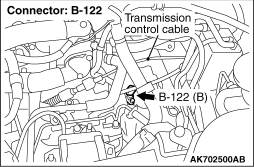 No. 2) engine control relay connector and B-122 (terminal No. 3) vehicle speed sensor connector.