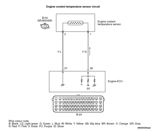 to reduce its resistance as the engine coolant temperature rises. Therefore, the sensor output