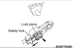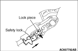 4.Pulling the select cable slightly towards the cabin side, press in the lock piece of the