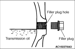 Is the oil level up to the lower edge of the filler plug hole?