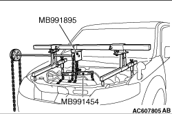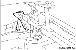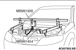 caution Place rag between the engine mechanical hanger (Special tool: MZ203830 or MZ203831) and the windshield to prevent the special tool from interfering with the windshield.