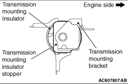 Install the transmission mounting insulator stopper as shown in the figure.