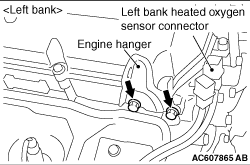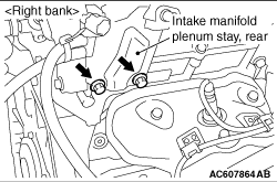 Remove the air intake plenum stay, rear on the right bank and the engine hanger on the left bank, and then install the engine hanger plate (Special tool: MB992208) to the place.