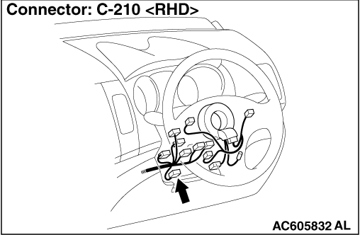 Repair the wiring harness between the C-210 ignition switch connector terminal