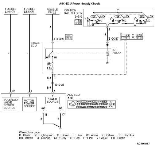 switch (IG1) is transmitted to ASC-ECU (terminal No.4) via the multi-purpose fuse No.12.