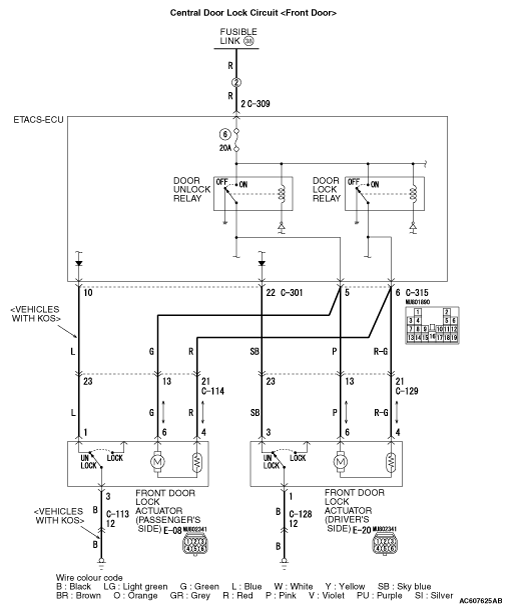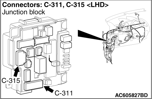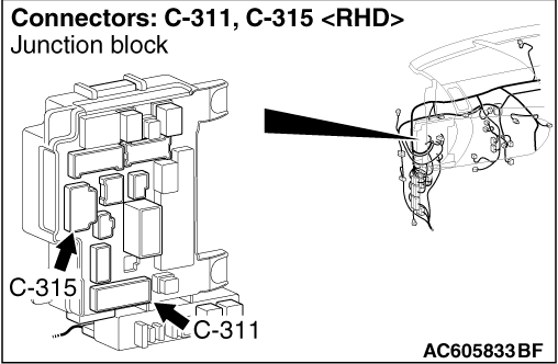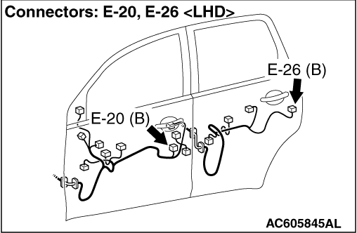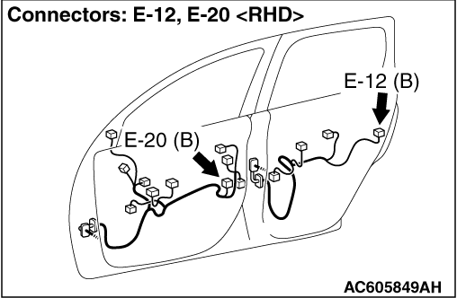 STEP 2. Connector check: C-315 ETACS-ECU connector, E-20 front door lock actuator (driver’s side) connector
