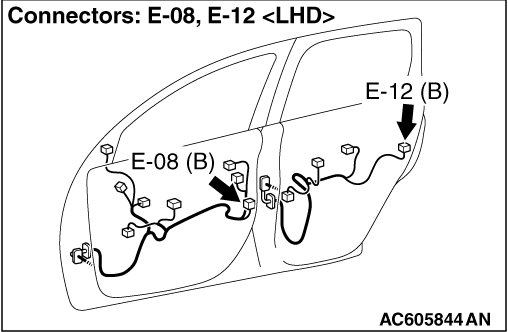 STEP 7. Check of the wiring harness between the C-315 ETACS-ECU connector terminal Nos. 5, 6 and the E-08 front door lock actuator (passenger’s side) connector terminal Nos. 6, 4