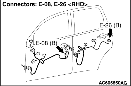 STEP 5. Connector check: C-315 ETACS-ECU connector, E-08 front door lock actuator (passenger’s side) connector