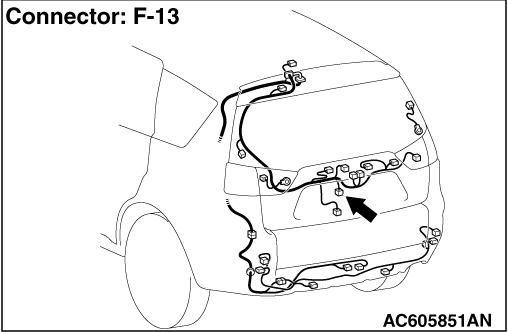 STEP 14. Connector check: F-13 Tailgate lock actuator connector
