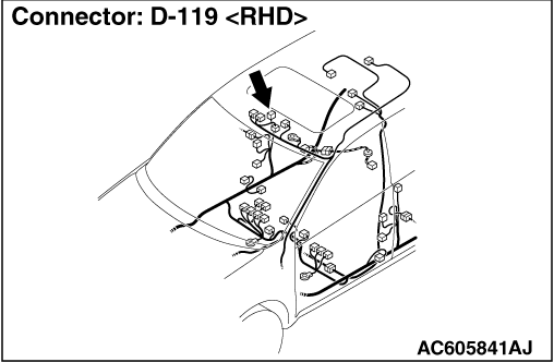 STEP 1. Connector check: D-119 Outside transmitter antenna assembly (driver’s side) connector, C-104 KOS-ECU connector