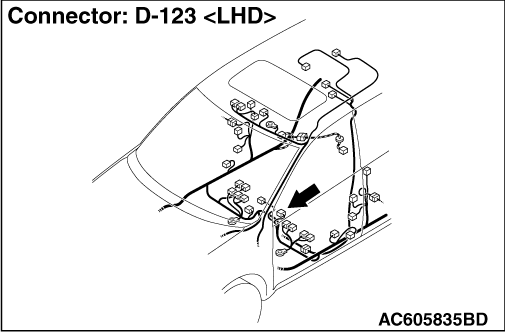 STEP 1. Connector check: D-123 Interior transmitter antenna assembly (front) connector, C-104 KOS-ECU connector