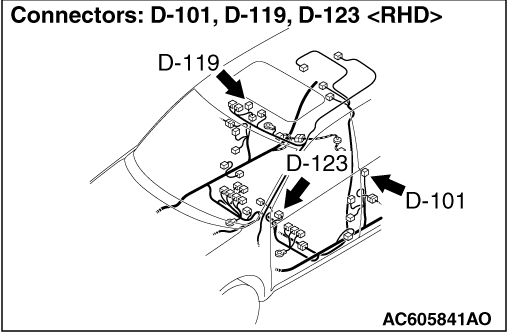 | note | Before the wiring harness inspection, inspect C-22 and F-22 <the outside transmitter antenna (tailgate)> intermediate connectors, and repair them if necessary. |