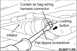 Use the flat-tipped screwdriver to pull out the locking button of wiring harness side connector, and release the lock.