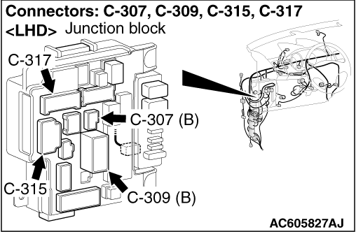 STEP 1. Connector check: C-315, C-317 ETACS-ECU connector