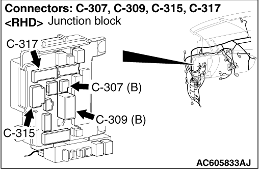 STEP 4. Connector check: C-307 and C-309 ETACS-ECU connector