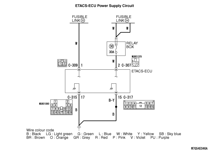 STEP 3. Wiring harness check between the C-315 or C-317 ETACS-ECU connector terminal No. 17 or 15 and the body earth