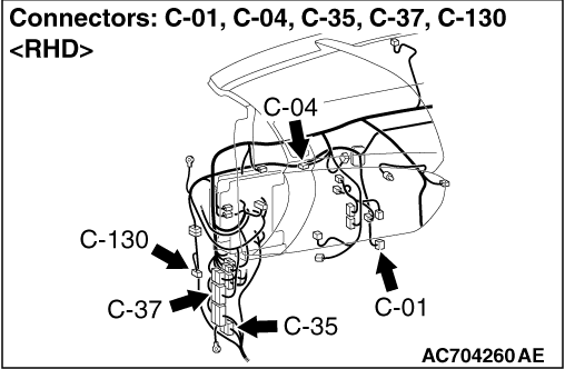 Check C-35 intermediate connector, and repair if necessary. If the intermediate connector is in good condition, repair the wiring harness between C-130 4WD-ECU connector and C-04 joint connector (CAN2).