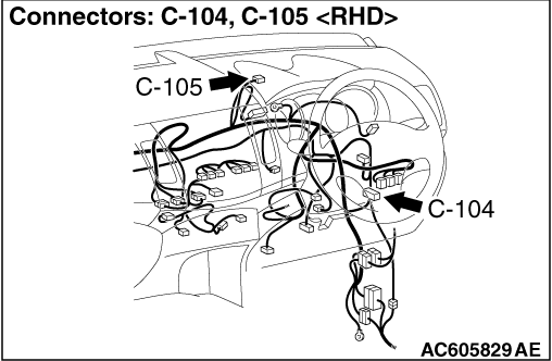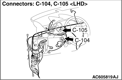 STEP 2. Check the wiring harness between C-104 KOS-ECU connector and C-105 joint connector (CAN1)