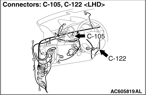 STEP 1. Connector check: C-105 joint connector (CAN1) and C-122 hands free-ECU connector