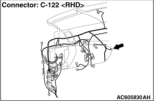 (3)Check that there is continuity between C-122 hands free-ECU connector terminal No.4 and C-105 joint connector (CAN1) terminal No.11 <RHD - CAN_H>