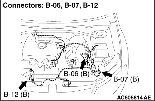 STEP 3. Connector check: B-12 A/C compressor assembly connector and B-06 engine-ECU connector