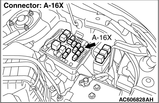 STEP 9. Connector check: A-16X A/C compressor relay connector