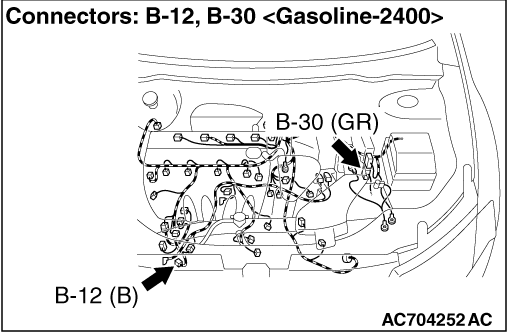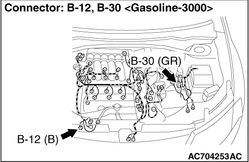 STEP 3. Connector check: B-12 A/C compressor assembly connector and B-30 engine-ECU connector