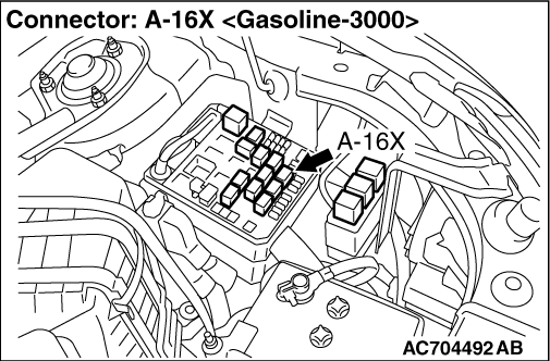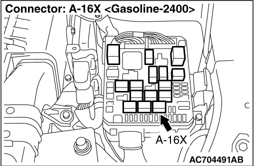 STEP 9. Connector check: A-16X A/C compressor relay connector