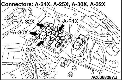 STEP 3. Connector check: A-25X PTC heater relay1 connector, A-32X PTC heater relay2 connector and A-24X PTC heater relay3 connector