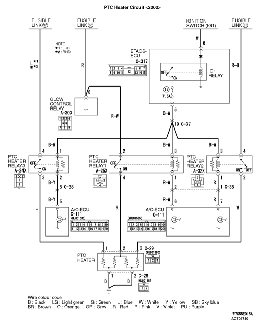 STEP 17. Check the wiring harness between A-32X PTC heater relay2 connector terminal No. 3 and C-317 ETACS-ECU connector terminal No. 6.