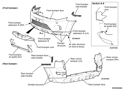 - Resin front bumper side bracket has been adopted to improve the alignment with the body.