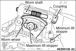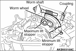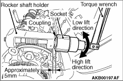 <Example > If the dial gauge reading is -0.11 mm, valve clearance = 0.26 mm + (-0.11) = 0.15 mm 16.Loosen the rocker arm lock nut at the forward engine side. Pull up the adjusting screw once. From the upper portion of the adjusting screw, sufficiently apply the engine oil between the lower adjusting screw end and the valve axis end so that the engine oil can be provided enough. And then, perform the adjustment by rotating the adjusting screw so that the dial gauge can read -0.11 mm. 17.After the adjustment, hold the driver to prevent the adjustment screw from rotating. Temporarily tighten the lock nut. Rotate the coupling anti-clockwise. Return the worm wheel to around the middle lift position. Pull out the feeler gauge. 18.For the valve at the backward engine side, check the valve clearance in the same procedure as that of the valve at the forward engine side. If the valve clearance is not within the standard value, perform the adjustment in the same procedure as that of the valve at the forward engine side. 19.After the adjustment, hold the driver to prevent the adjustment screw from rotating. Tighten the lock nut to the specified torque. And then, check that the dial gauge reading does not change. Tightening torque: 9.0 ± 1.0 N·m 20.Check again the valve clearance at the forward engine side. If the valve clearance is not within the standard value, perform the adjustment in the same procedure as the first adjustment. 21.After the adjustment, hold the driver to prevent the adjustment screw from rotating. Tighten the lock nut to the specified torque. And then, check that the dial gauge reading does not change. Specified torque: 9.0 ± 1.0 N·m 22.Rotate the coupling anti-clockwise. Return the worm wheel to around the middle lift position. Pull out the feeler gauge. 23.For the No. 2 cylinder inlet valve, check and adjust the valve clearance according to the procedures from Step 9 to Step 22. 24.For the No. 1 and No.3 cylinder exhaust valves, check and adjust the valve clearance according to the following procedures. 25.Insert the feeler gauge between the exhaust valve axis end and the adjusting screw. Measure the valve clearance. Standard value: 0.20 ± 0.03 mm 26.If the valve clearance is not within the standard value, loosen the lock nut. Adjust the adjusting screw so that the valve clearance can be within the standard value. 27.After the adjustment, hold the driver to prevent the adjustment screw from rotating. Tighten the lock nut to the specified torque. Tightening torque: 9.0 ± 1.0 N·m |