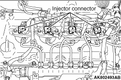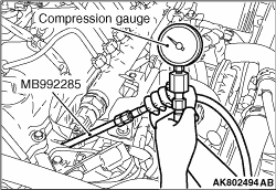 6.Install the special tool, compression press test adapter (MB992285) to the glow plug installation
