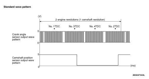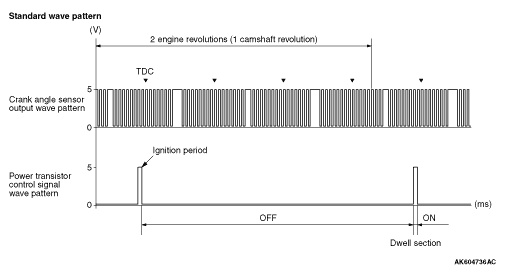 3.To verify the ignition advance angle, observe it simultaneously with the crank angle sensor output signals.