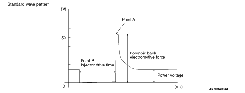 • Power supply voltage: While there is no signal from the engine-ECU, the supply voltage is applied. If this supply voltage is low, the invalid injection period gets longer, and the drive period gets longer as well.