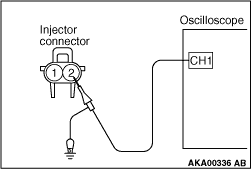 1.Disconnect the injector connector and insert the special tool Test harness (MB991658) in-between the separated connectors. (always mate all the terminals.)