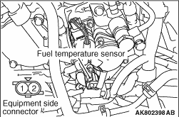1.Disconnect the fuel temperature sensor connector. 2.Measure the resistance between terminals. Standard value: Approximately 2.0 - 3.0 kΩ (at 20 °C) 3.If not within the standard value, replace the supply pump assembly. After replacing the supply pump, learn the supply pump (Refer to GROUP 00 - Precautions before Service - What the Common Rail Learns <4N1>